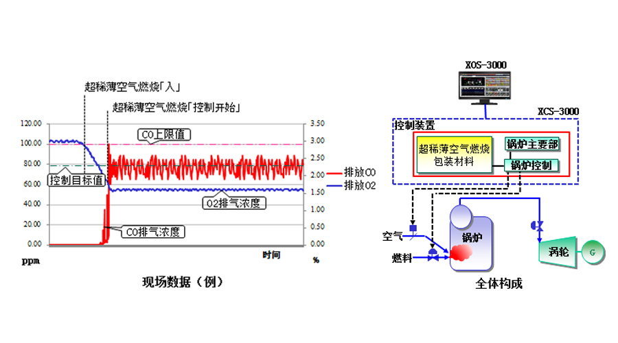 ◆通過(guò)實(shí)施「超稀薄空氣燃燒解決方案包裝(專(zhuān)利申請中)」,與實(shí)施控制鍋爐O2排氣鍋爐相比,更加能削減▲0.5-▲1.5%的燃料費用